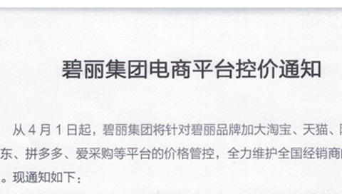 碧麗集團電商平臺控價通知